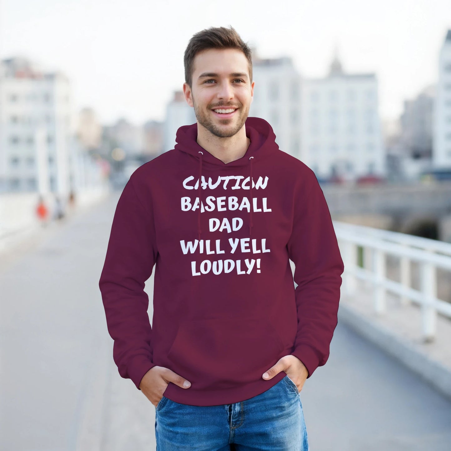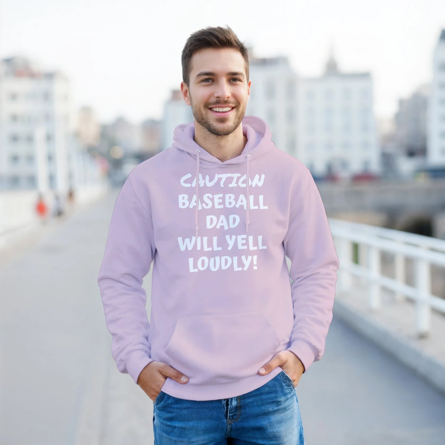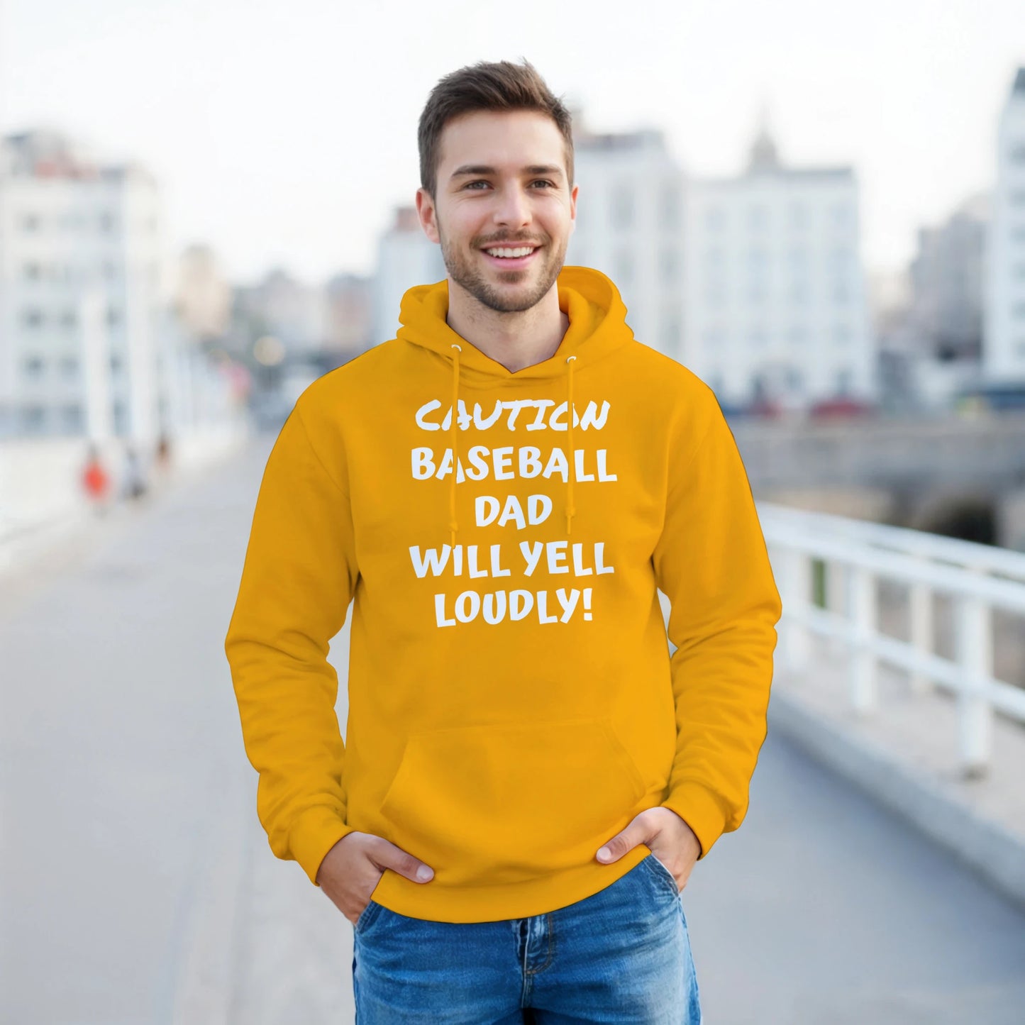 Show off your proud baseball dad status with our Caution Baseball Dad Will Yell Loudly Hoodie! This hoodie is designed for comfort and style, making it perfect for cheering on your favorite team from the stands.