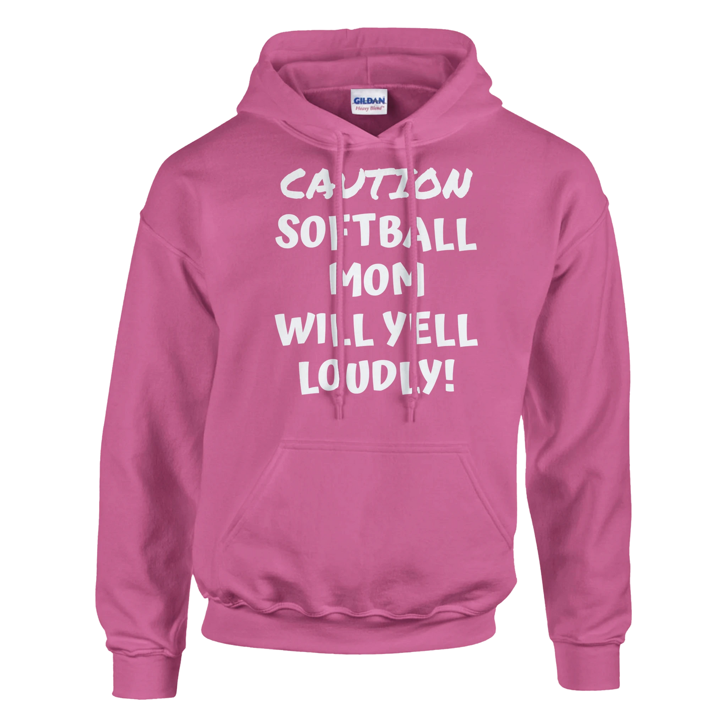 Show your spirit on and off the field with our Caution Softball Mom Will Yell Loudly Hoodie. This heavy blend hoodie is designed for maximum comfort and durability, making it perfect for cheering on your favorite player.